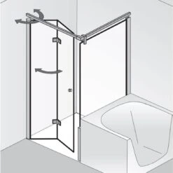- nur in Verbindung mit Drehfalttür (Typ 1664 oder 1665) oder Drehtür (Typ 0605) für Badewanne möglich!