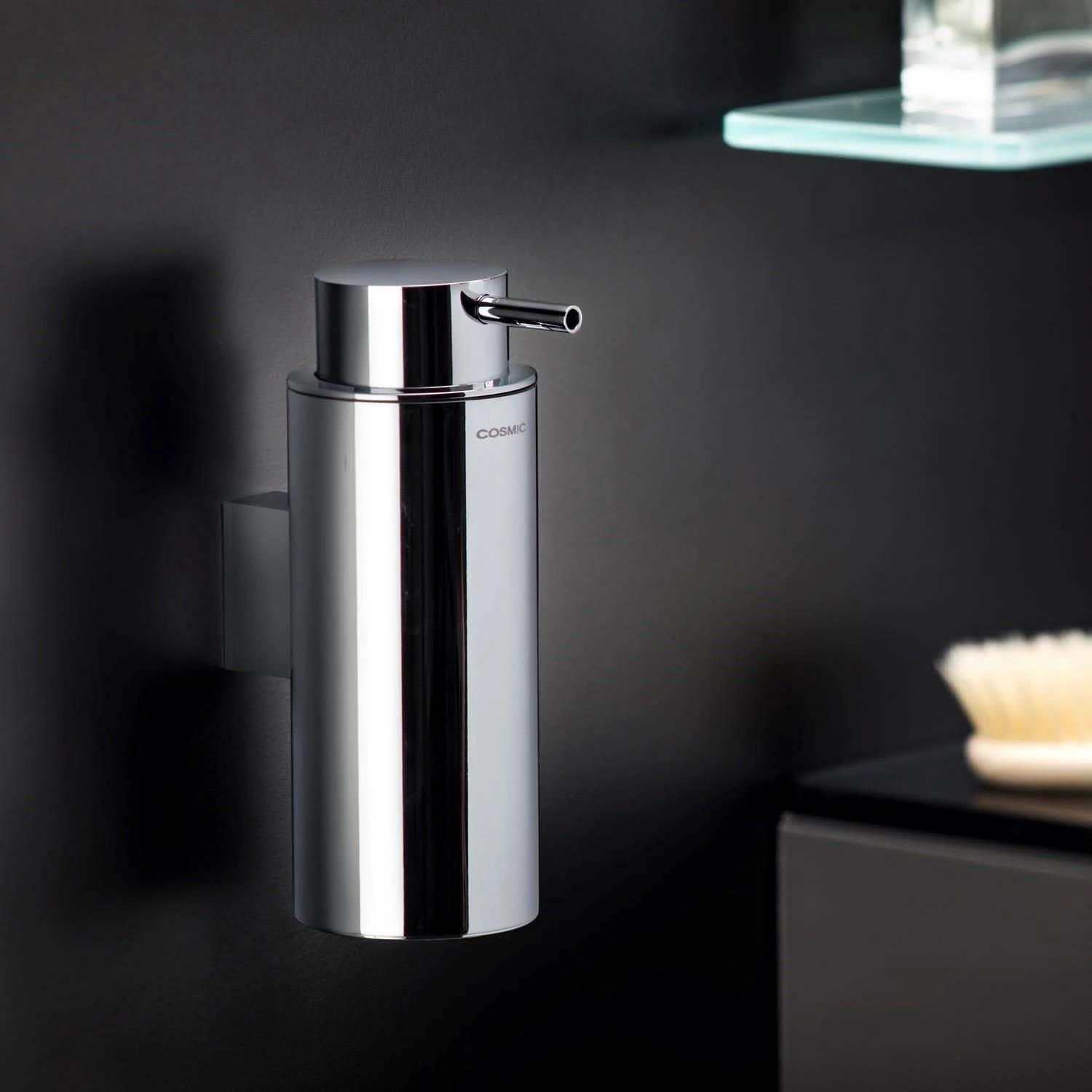 Dieser Spender ist Teil der Cosmic Project-Kollektion. Entworfen von Cosmic Studio, ist es eine komplette Sammlung von 30 Accessoires für das Badezimmer, die verschiedene Formen und Materialien kombinieren. Mit Project vervollständigen Sie Ihr Badezimmer mit einem Vorschlag voller Persönlichkeit.