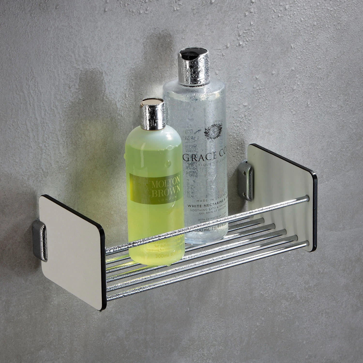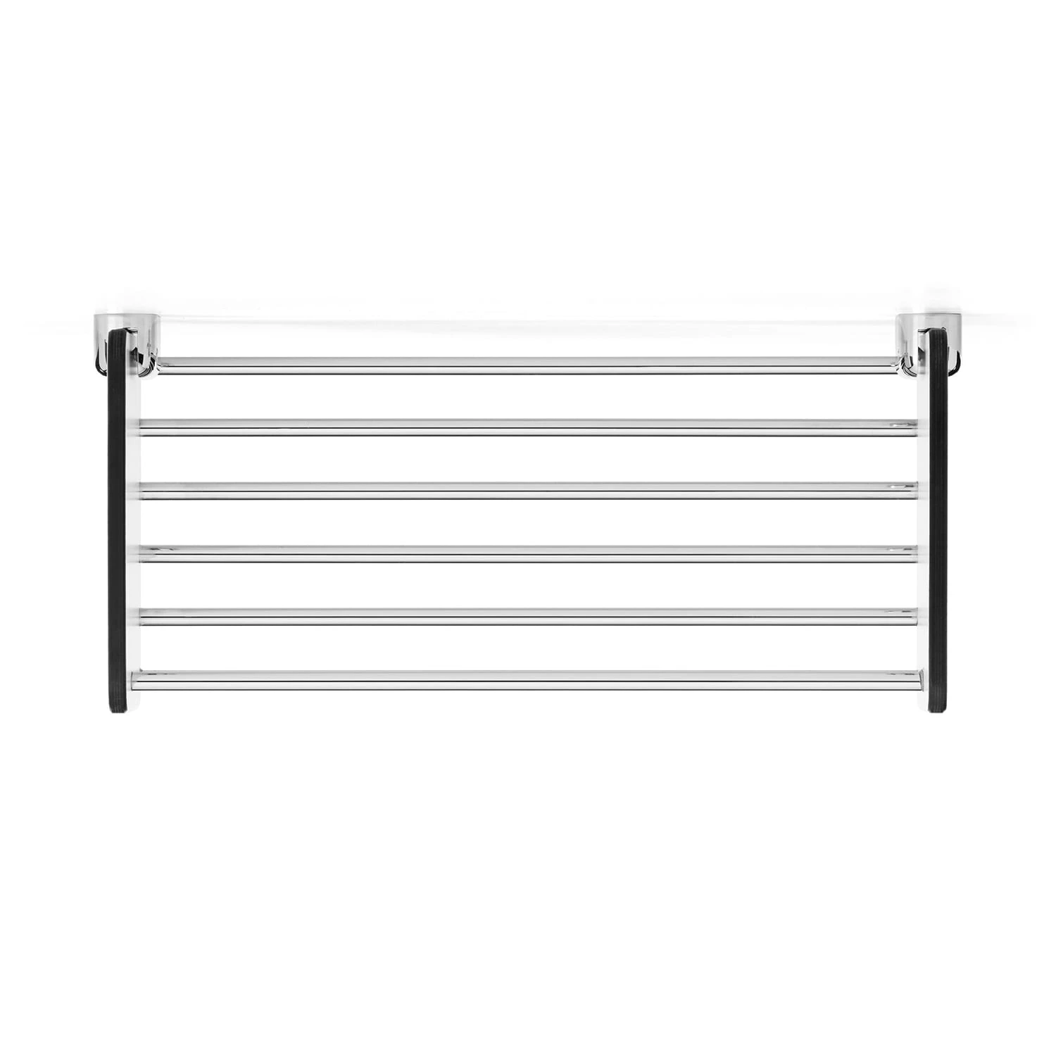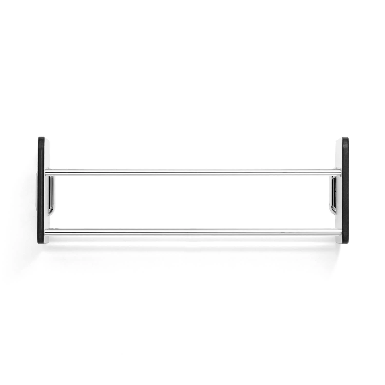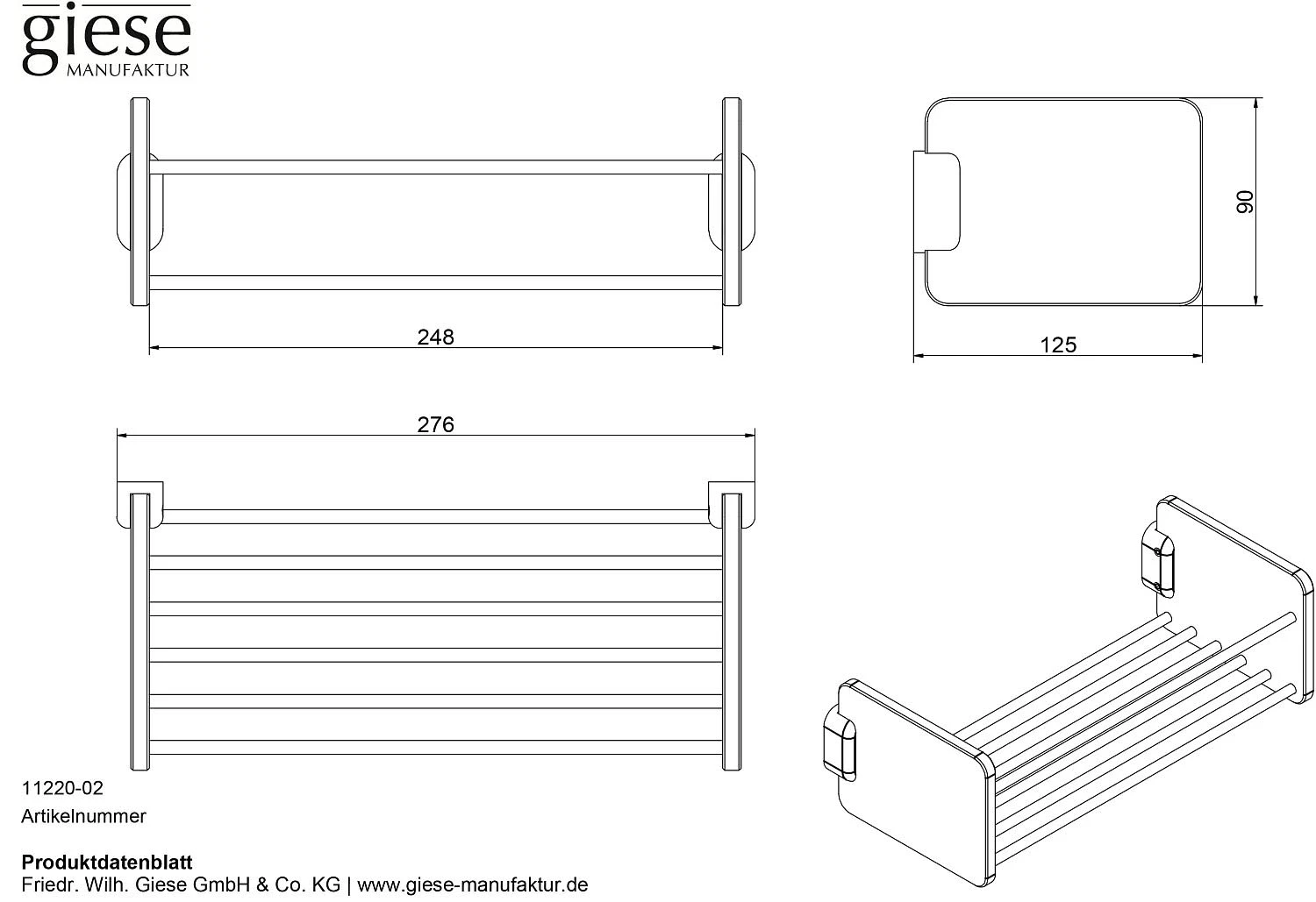 - Seitenteil aus HPL in weiß mit schwarzem Kern, Boden und Relingstangen in Messing