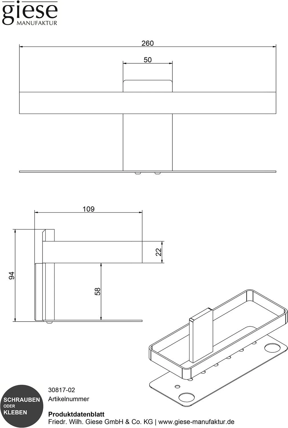 Giese Newport Duschkorb mit Halter für Rasierer