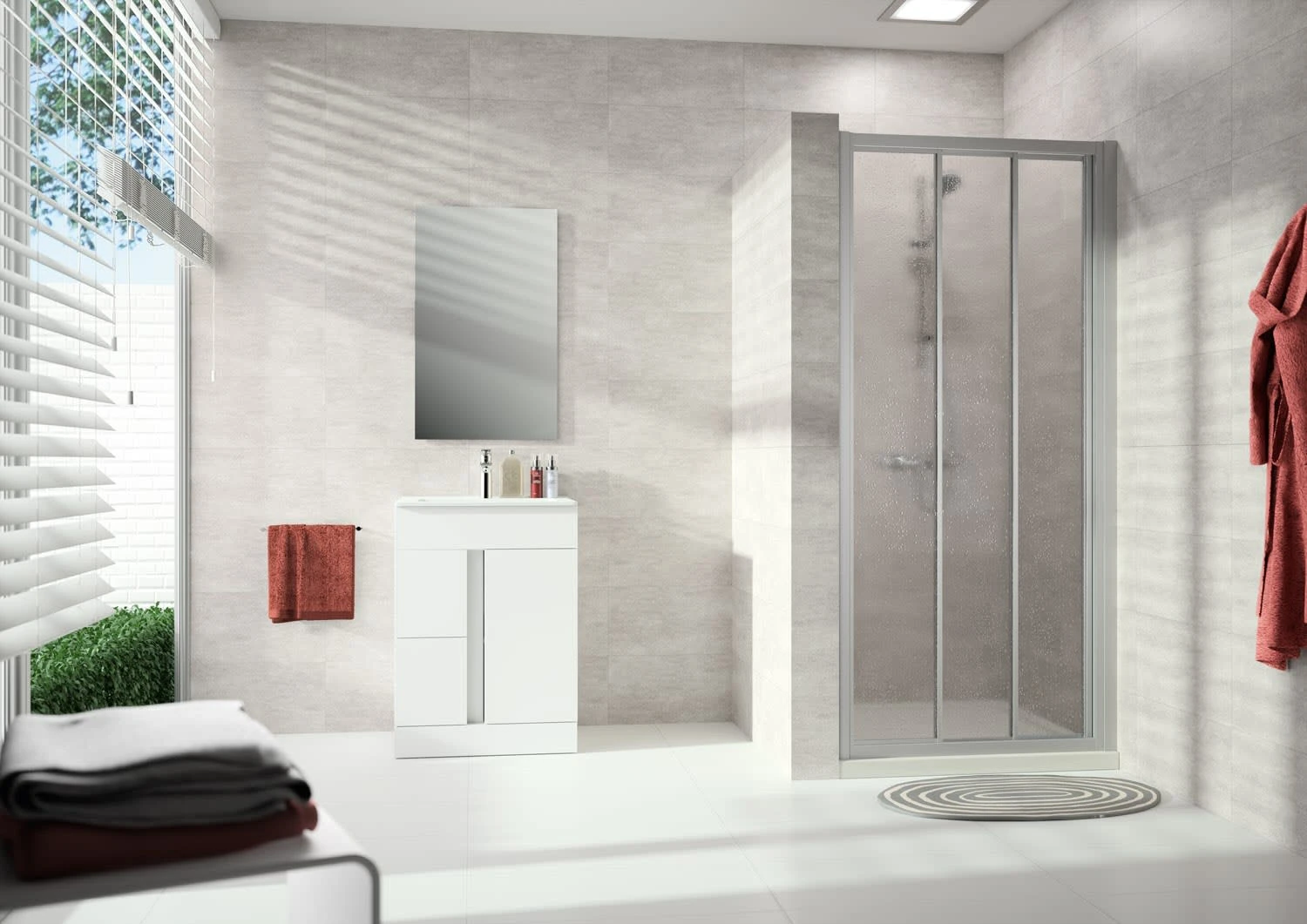 - zum Einbau in einer Nische und zur Kombination als Ecklösung mit Alpha 2 Seitenwand geeignet