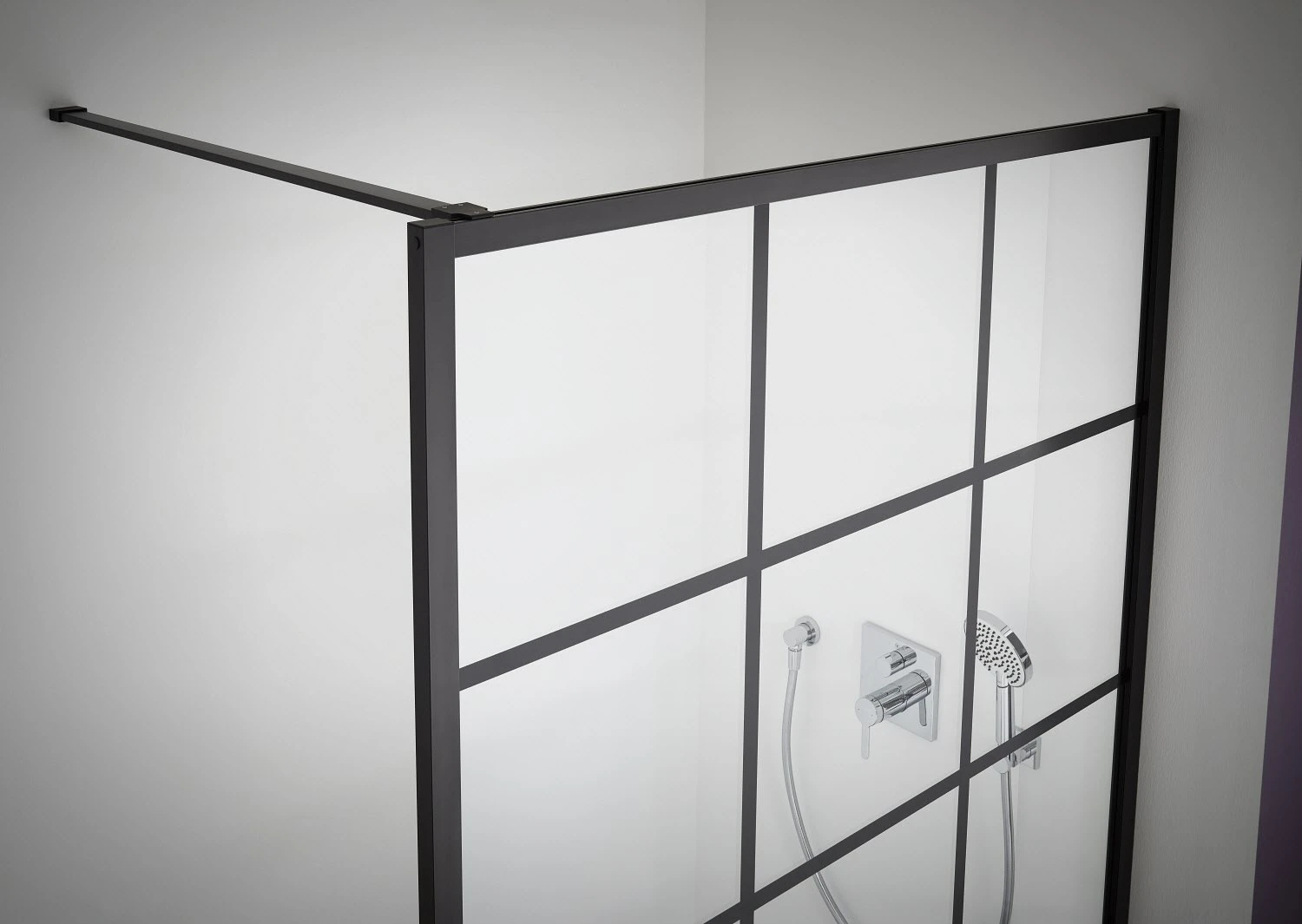 - Gerahmte WALK-IN-Glasanlage mit Wandbefestigung,
