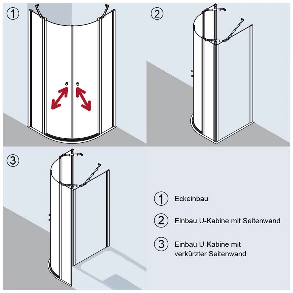 Kermi Ibiza 2000 Viertelkreis-Duschkabine mit Pendeltüren 90 x 90 x 185 cm, Radius 50 cm