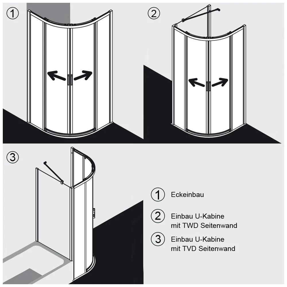 - zum Einbau in der Ecke oder als U-Kabine in Verbindung mit