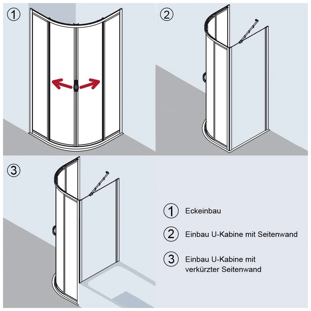 - bei Montage als U-Kabine bitte darauf achten, dass entsprechende Seitenwände separat bestellt werden müssen