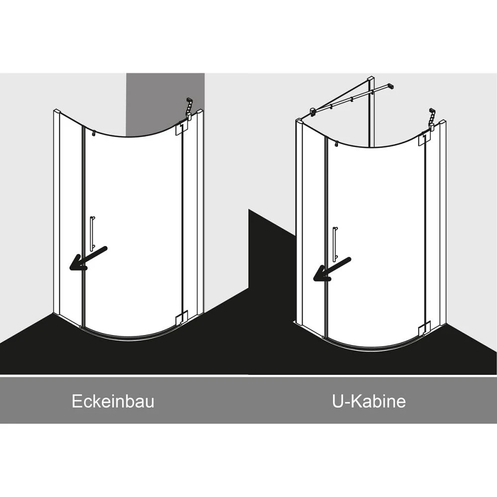 - bei Montage als U-Kabine bitte darauf achten, dass entsprechende Seitenwände separat bestellt werden müssen