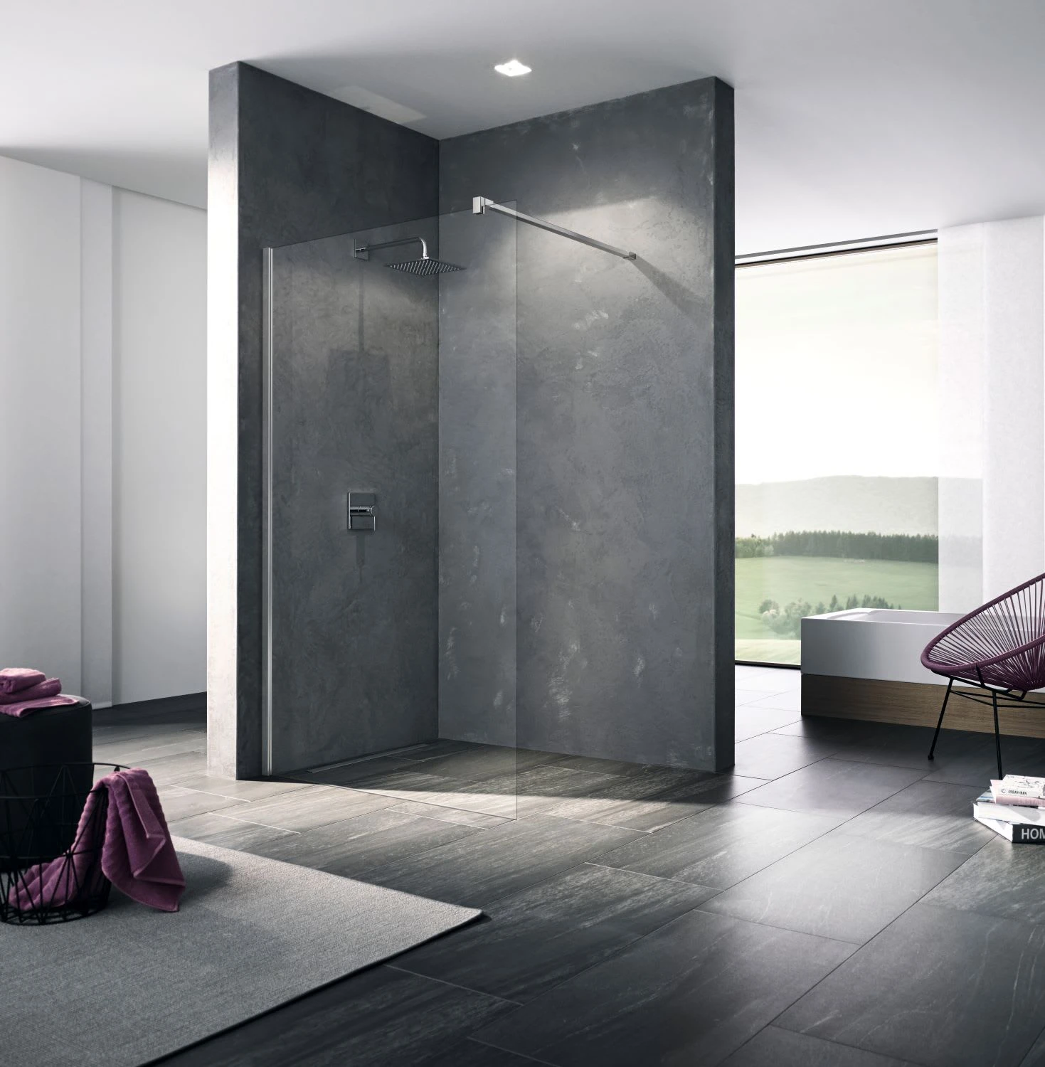 - Teilgerahmte WALK-IN-Glasanlage mit Wandbefestigung,