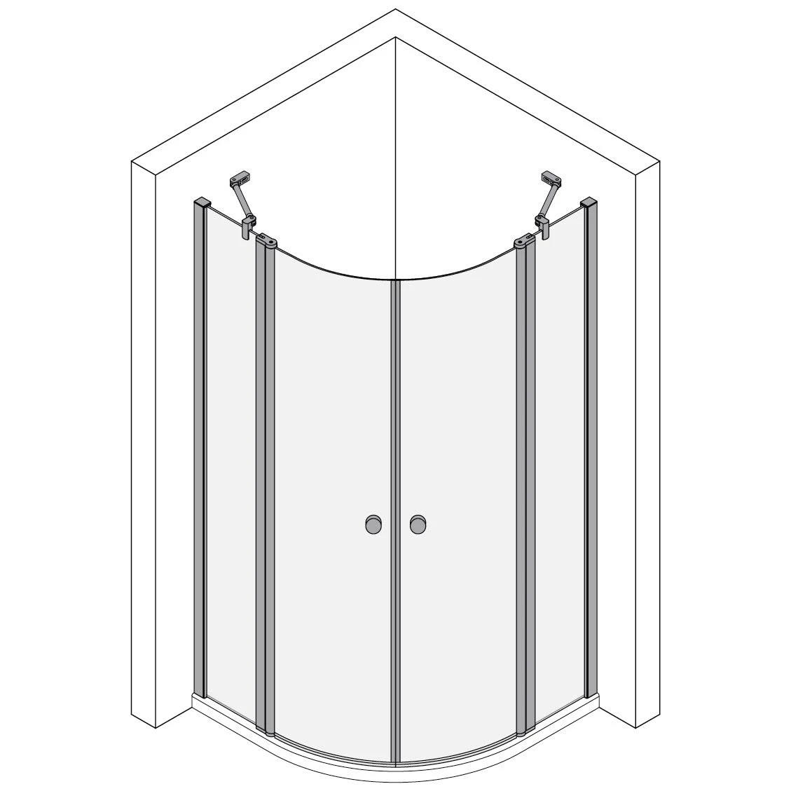 Koralle TwiggyPlus Viertelkreisdusche mit Pendeltür und Festelement 100 x 185 cm, Radius 52