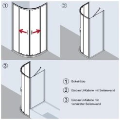 - Schenkellänge der eingebauten Duschwanne: 88 – 90 cm
