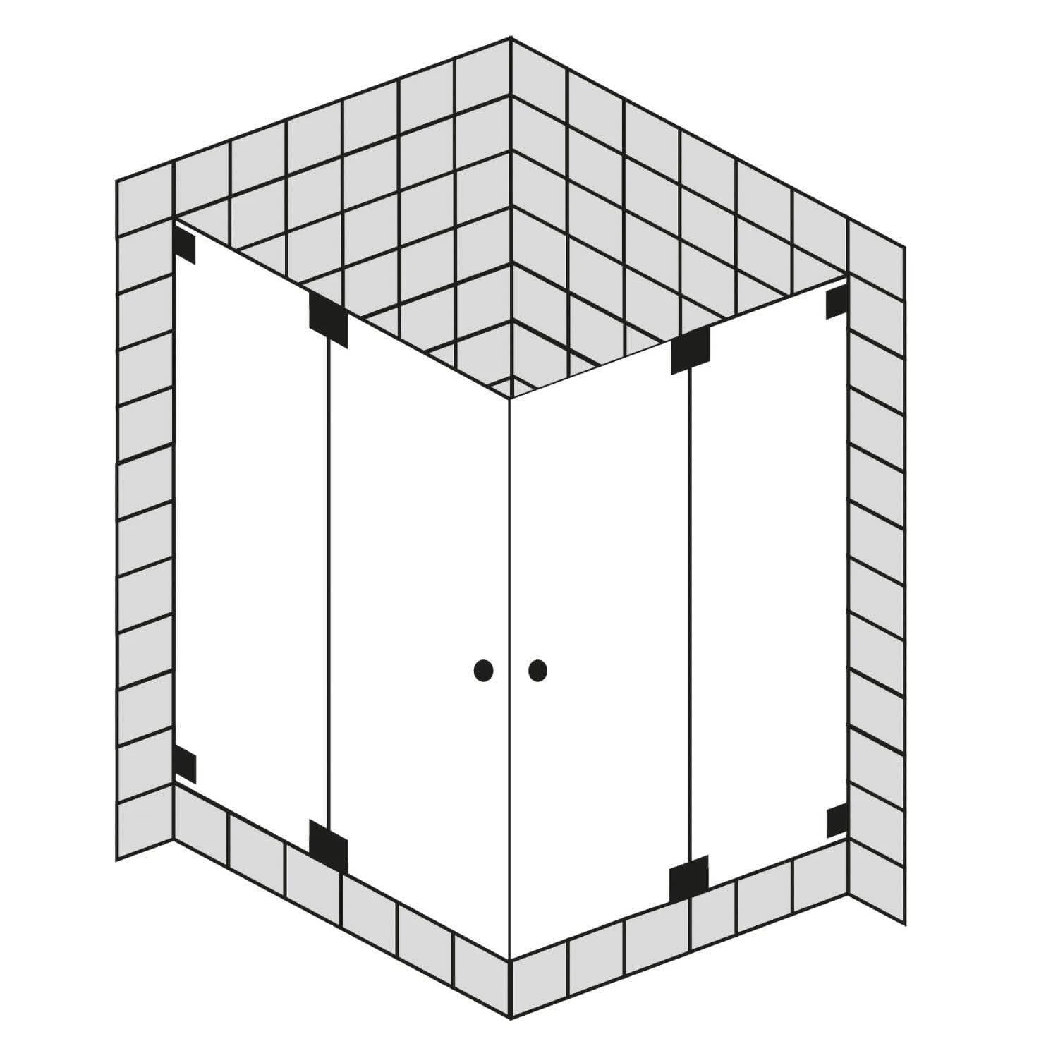 - bestehend aus zwei Festteilen und zwei Pendeltüren
