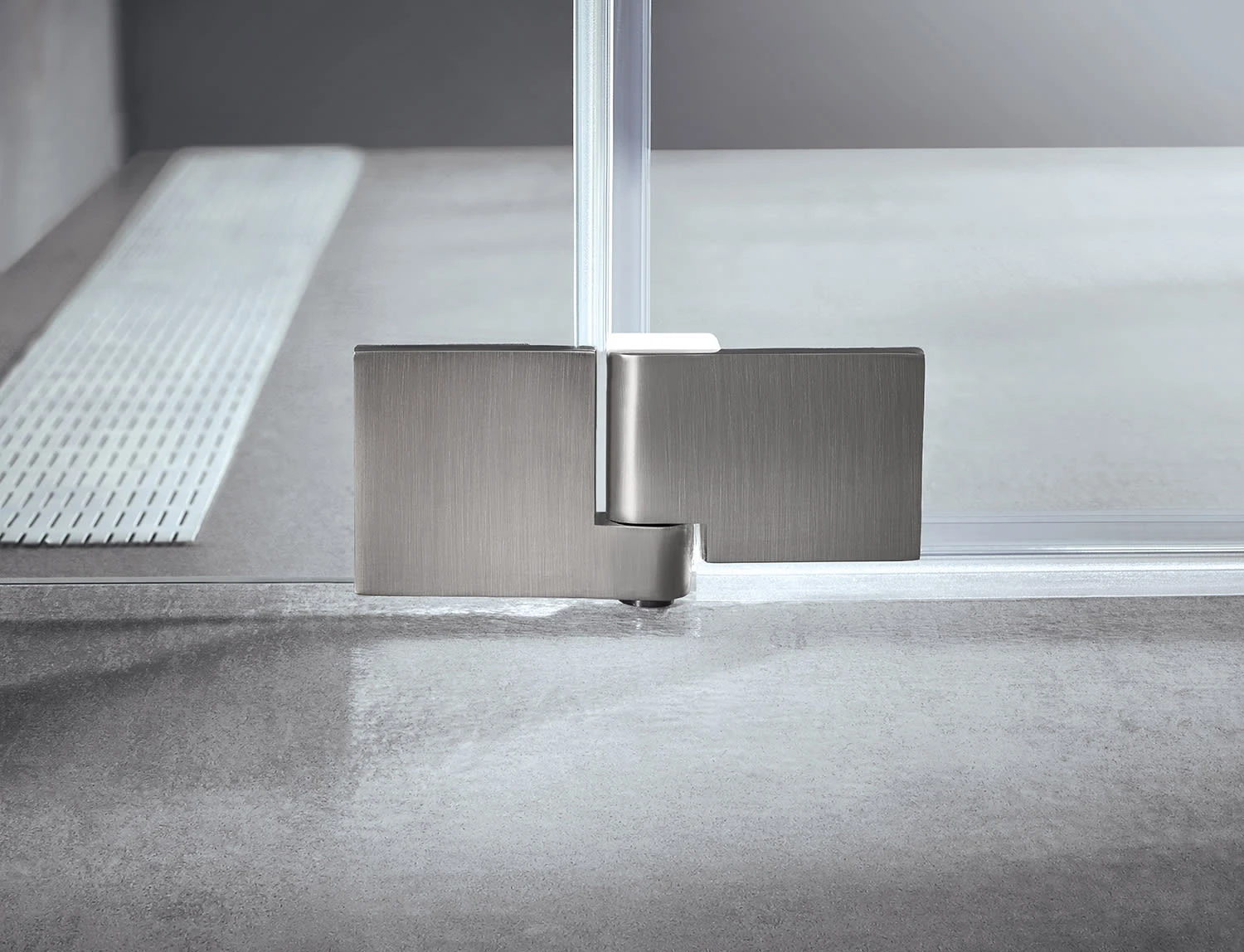 - durchgehende, vertikale Dichtung im Scharnierbereich (Glas/Wand) für optimalen Spritzschutz