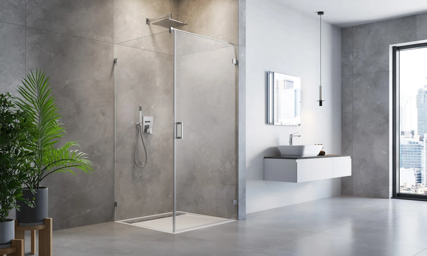 Steinkamp Life Drehtür mit Seitenwand Sondermaß bis 100 x 160 cm, Anschlag rechts inkl. easypearl, mittig mattiert