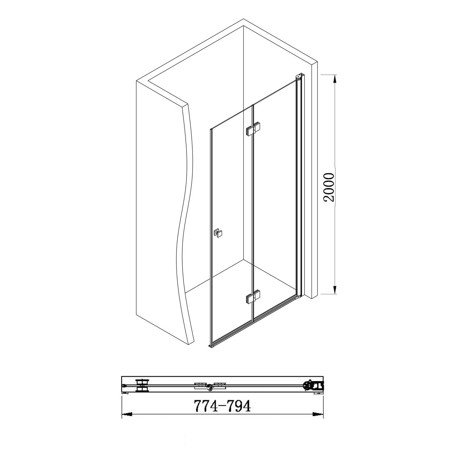 Sturotec 5090 Drehfalttür mit Seitenwand 80 x 100 x 200 cm Anschlag rechts, mit Nano-Beschichtung